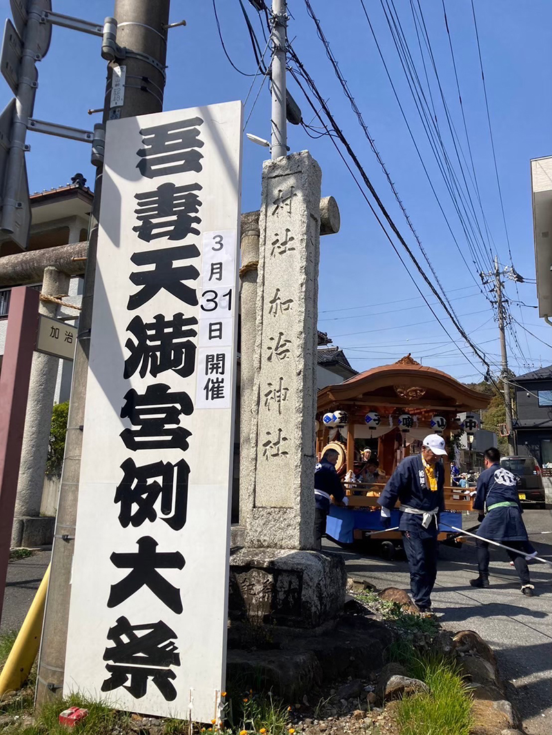 1日目は宵宮とし、底抜け屋台にて祇園囃子を演奏しながら地区内を巡行する。2日目が本祭りで、加治神社境内にて山車を飾り置き、居囃子にて囃子を奉納する。