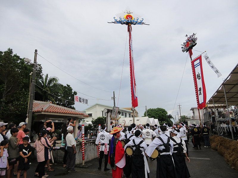 今年の豊年豊作に感謝し、来年の世果報(ゆがふ)と地域の無病息災や子孫繁栄などを祈願する。