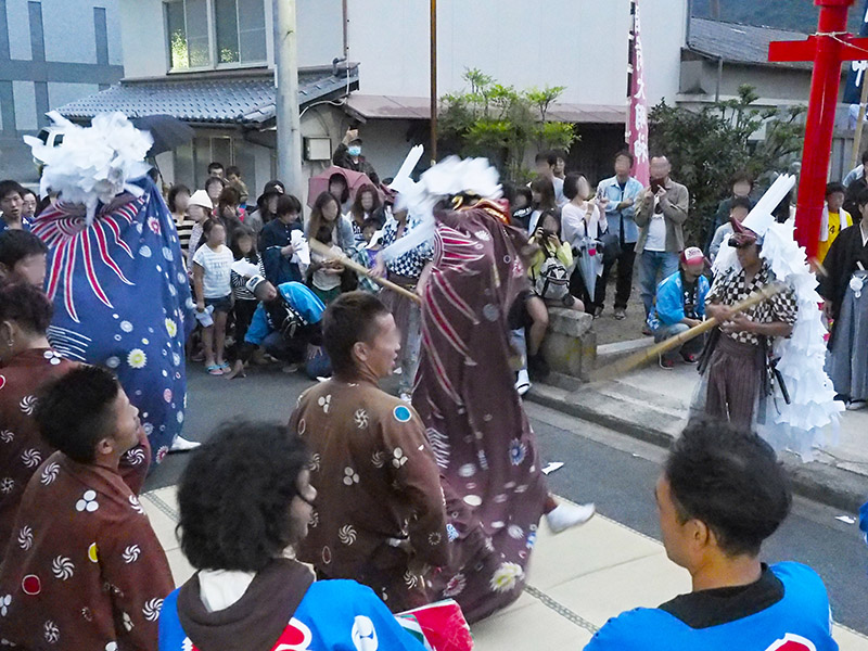 秋祭りでは神事・獅子舞奉納のほか、頭人の参拝が行われます。頭人は中広地区を代表して尾崎地区の赤穂八幡宮の神幸式に参加するもので、獅子舞の宮入はこの頭人が八幡宮から帰ってくる夕方以降に行われます。