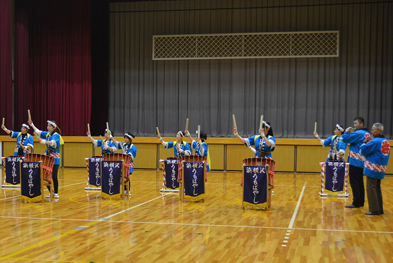 打ちばやしは江戸時代に室根神社の祭典で打ち鳴らしたのが始まりといわれ、室根町の各地で行われている。浜横沢では気仙沼から指導を受けて昭和57年に保存会を作り、地区の子供たちに教えている。