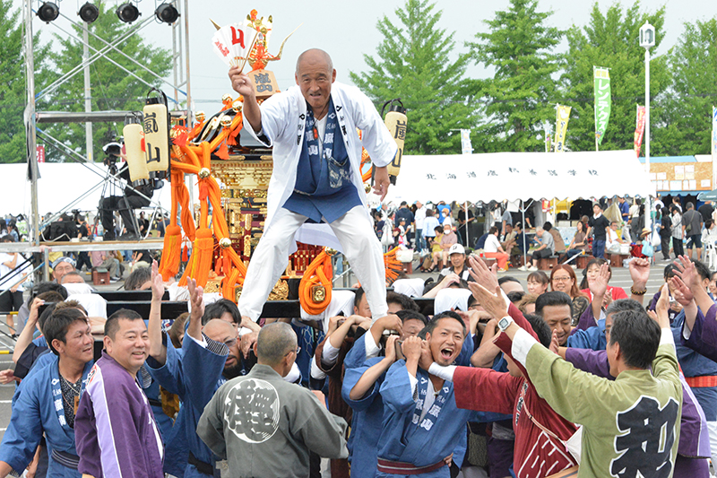 鷹栖神輿会嵐山による神輿渡御は圧巻です。地域住民が中心となり活動しており、身にまとった半纏や、逞しい動き、神輿の迫力、威勢のいい掛け声が見どころです。